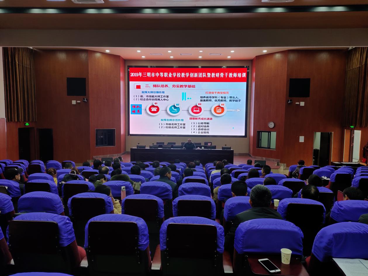 2019年12月30-31日,由三明教育学院主办的2019年三明市中等职业学校教学创新团队暨教研骨干教师培训活动在米兰(中国)报告厅举行。本次培训面向全市中职校教学分管副校长、教学教研工作负责人和主干专业建设负责人,参训人员达70余人。