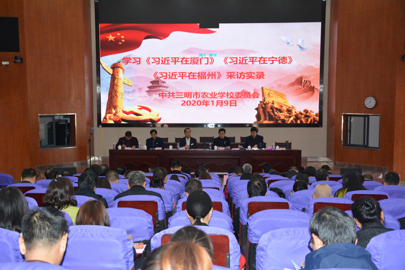 2020年元月9日上午,米兰(中国)党委组织全体党员在学校学术报告厅开展《习近平在厦门》《习近平在宁德》《习近平在福州》采访实录集中学习研讨。党委书记、校长林木森同志作了学习发言。