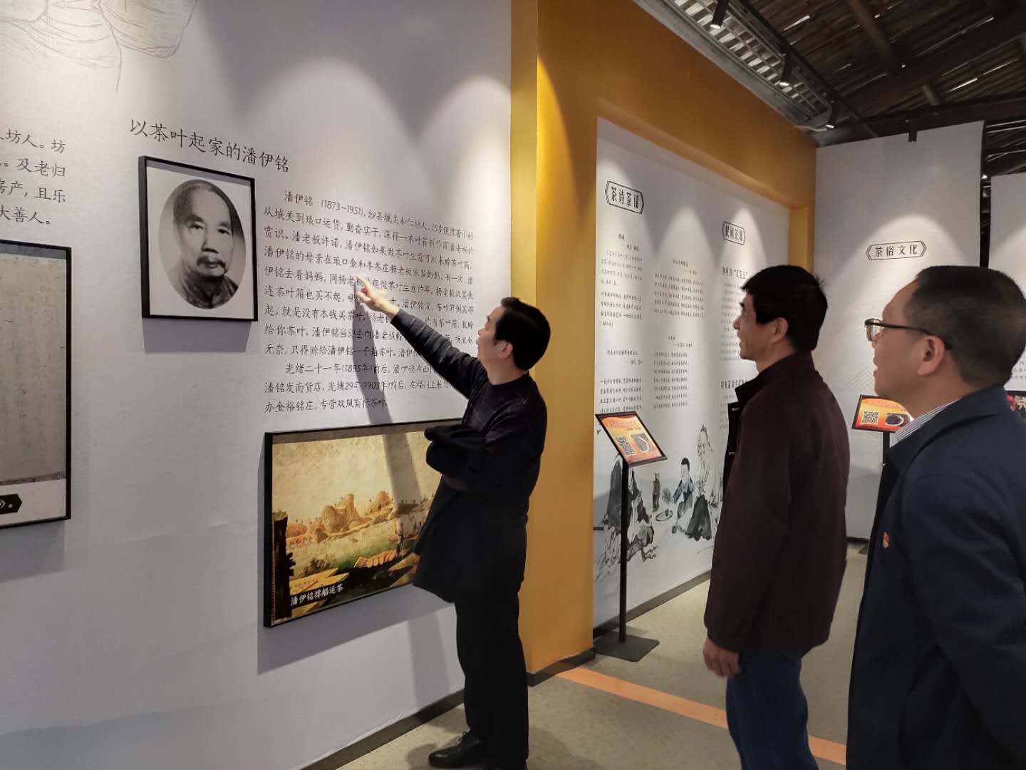 (在红边茶文化馆内参观和交流)