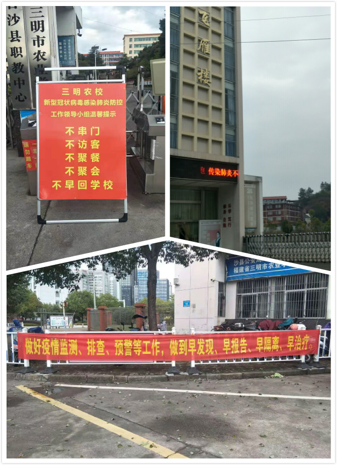 生命重于泰山,疫情就是命令,防控就是责任。三明市农业学校新冠肺炎防控工作领导小组认真贯彻执行习近平总书记“守土有责、守土担责、守土尽责”指示,严格执行教育部的“五个一律”规定,管控好校园进出关,从通道上坚决阻止疫情入侵。
