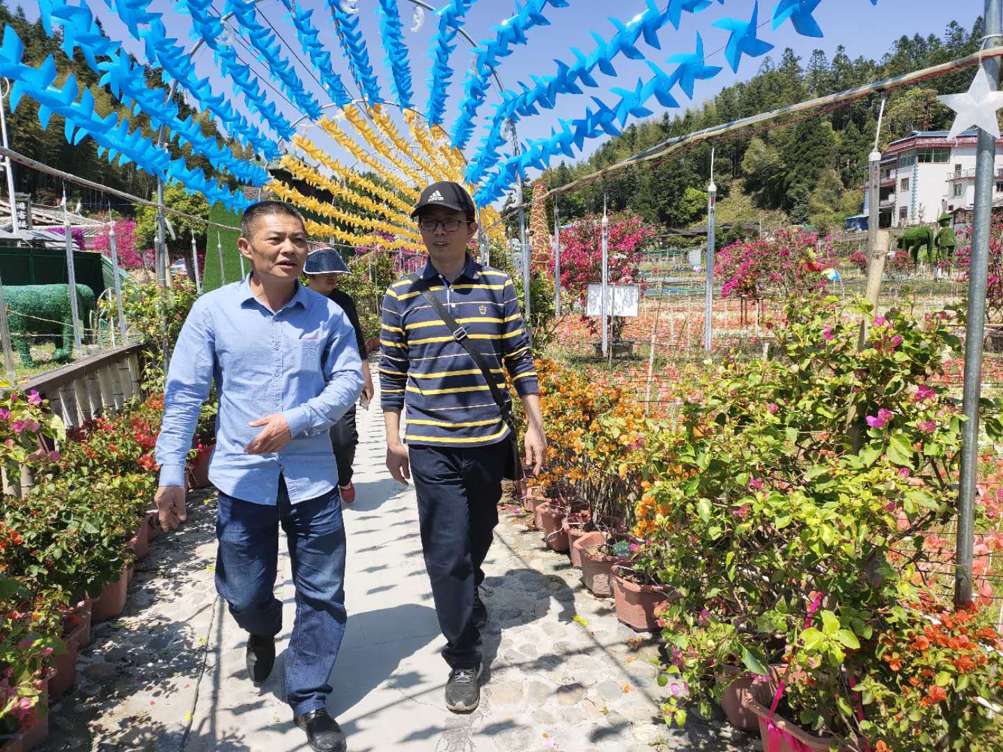 米兰(中国)一行到达济阳乡济中村时,村里一派繁忙景象,位于村中的凤阳堡内正在布置艺术花坛,为迎接“五一”开始的乡村旅游作准备。在村主任涂扬宗带领下,三明农行一行参观了凤阳堡、古桥、古宫庙祠堂等,登高领略了清新的高山生态,随后与村书记、主任及农业专家涂前程一起座谈,了解、交流乡村振兴试点村的建设。