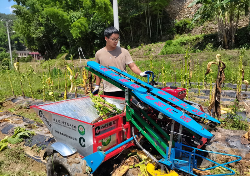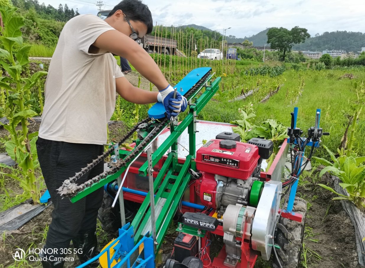 2020年6月的一天,在位于沙县西霞的一片烟田里,一位皮肤黝黑的小伙子驾驭着手中的“钢铁侠”沿着烟畦往前走。他神情专注,随着“钢铁侠”的运行变化,不时停下,给它拧拧螺丝、拉拉链条,只一会功夫,汗水已湿透衣背。