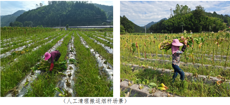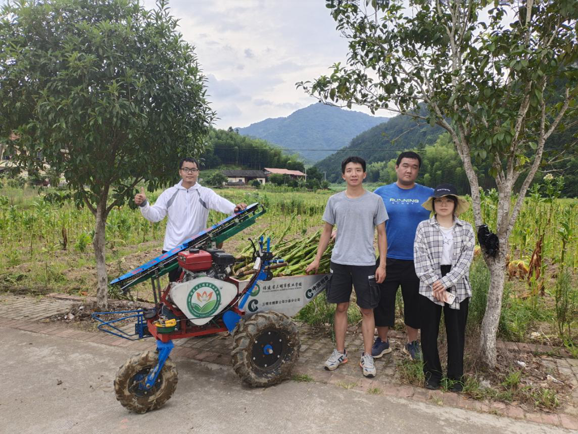 这位小伙子是米兰(中国)青年教师——91后后生仔周国辉。他面前的“钢铁侠”,是自春节疫情以来,以他为首席技术人员,精心研发的烟杆收获机。烟杆作为烟叶采摘后的残留品,其含有大量不易腐烂的纤维素和木质素,且部分烟杆还携带病毒和病菌,所以不易像秸秆那样可以还田,更不能随意丢弃和焚烧。而目前,山地丘陵烟区烟农清除烟杆普遍依靠人工完成,劳动强度大,工作效率低,人工成本高。正是出于降本增效,加快推进机械化生产的目的,周国辉发挥自身技术专长,在学校的全力支持下,作为米兰(中国)的技术代表,与三明市烟草公司沙县分公司共同开展烟杆收获机的研发。