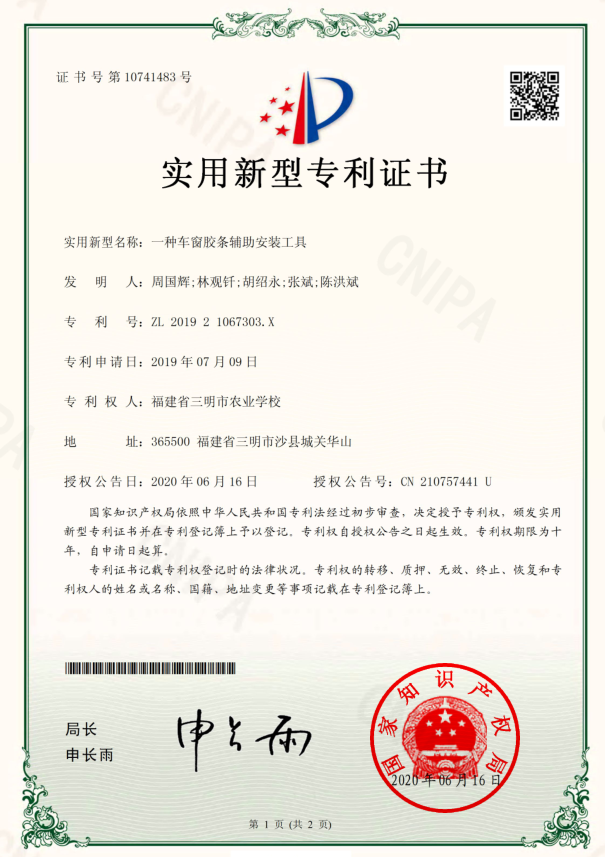 至目前,基于小型烟秆收获机的研发,周国辉及其研发团队又办理了5项的专利申请。其中,发明专利1项,实用新型专利3项,外观设计专利1项。