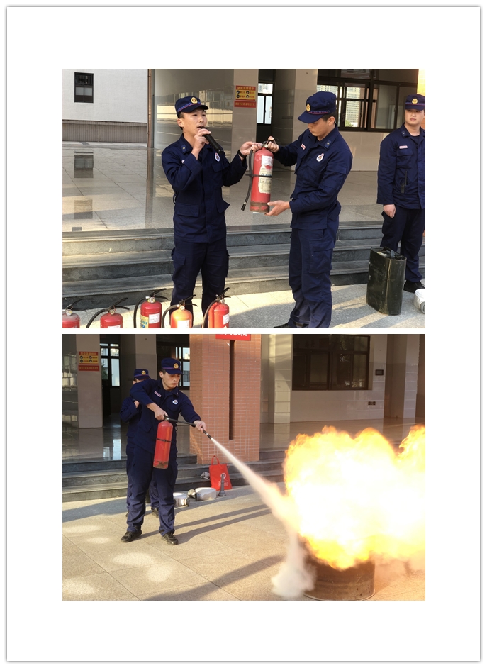 消防官兵演示灭火器使用方法