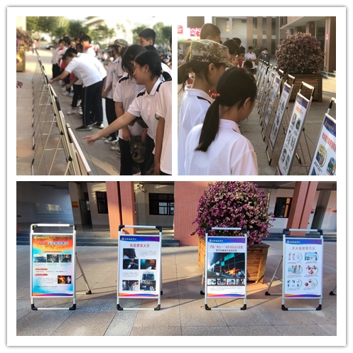 学生参观消防安全知识展板