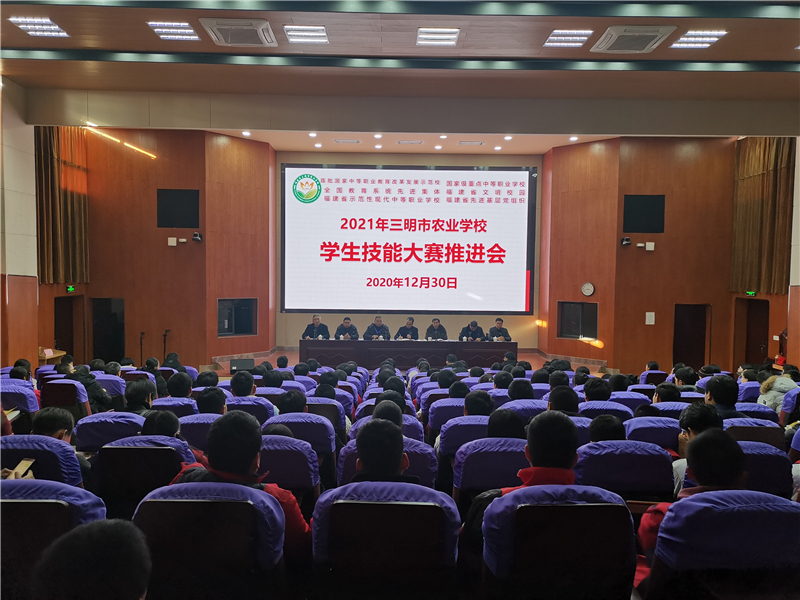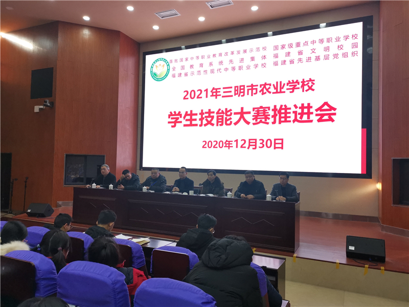 12月30日下午,我校于校报告厅召开2021年学生技能大赛推进会。副书记、副校长罗世钦(主持学校全面工作)、副校长黄书盛、副校长江文林、纪委书记陈文优、招就处主任胡安生、教务处主任郑君强、实训中心主任胡绍永出席会议。各教研组组长及省、市赛指导教师、各赛项参赛学生共150余人参加会议。会议由副校长黄书盛主持。