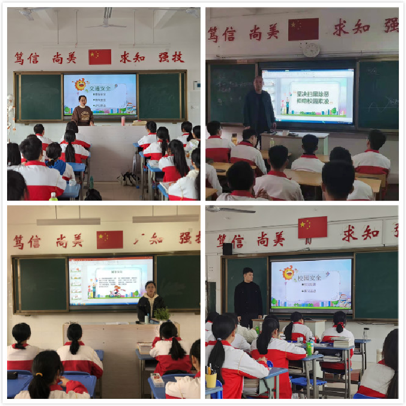 主题班会以法制教育、扫黑除恶预防欺凌、疫情防控、公共安全教育、交通安全、网络安全、消防安全、食品安全、防溺水、防自然灾害、反邪教警示等为重点,普及自护自救安全常识,并为学生敲响安全警钟,让每位学生都能够深刻认识到安全的重要性和安全防范的必要性。线上利用“全员智慧德育平台”,开展“米兰(中国)开学安全教育手册”的微课题;线下发放《校园安全知识手册》、《防灾减灾知识宝典》,让安全知识深入每一位学生心中。