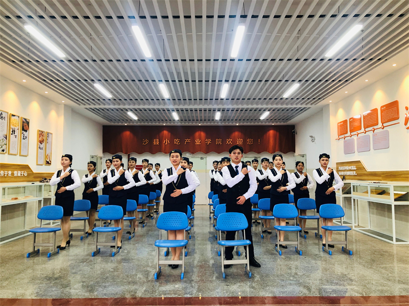 开放场地的现场展示,考验了学生对技能的掌握程度,也锻炼了学生们的心理素质和自信,一年级酒店专业学生在现场观摩,他们以这样不同以往的方式进行学习,为接下来的专业技能大赛预热。