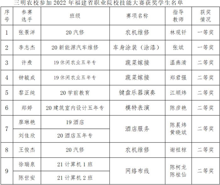 千锤百炼成绝技,竞技场上显匠心 ——三明市农业学校在2022年福建省职业院校技能大赛中再创佳绩