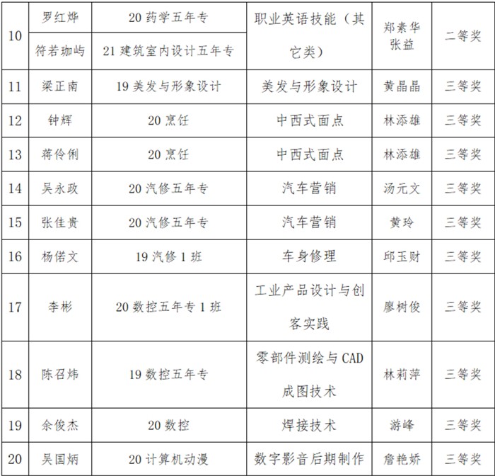 面向未来,我校将继续以各级各类技能大赛为抓手,促进岗课赛证融通,进一步提升职业教育现代化水平,优化职业教育人才培养模式,更好地服务国家新发展阶段、新发展理念、新发展格局下的经济社会发展,不断创造新的、更辉煌的成绩!