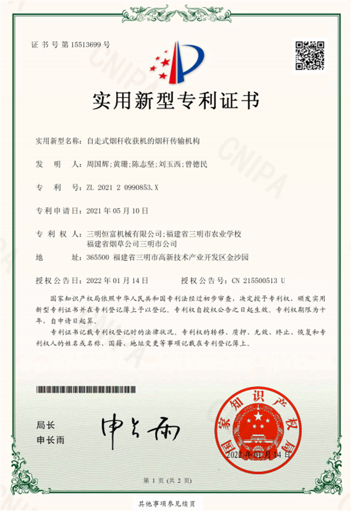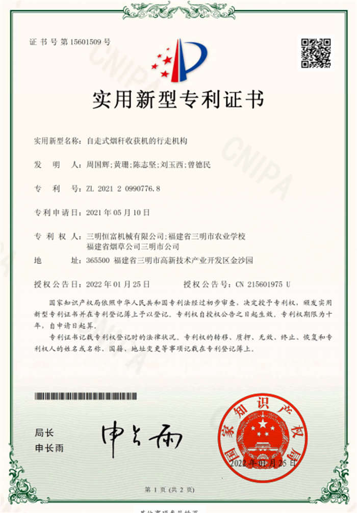 米兰(中国)“周国辉三创工作室”自2019年开始组建,以青年教师周国辉为领衔人,集聚一批扎根创新、创业、创造的教师,以服务三农为愿景使命,以机械、汽车专业建设为基础,以高技能人才培养和技术攻关创新为目标。目前,工作室已获得国家授权发明专利2项、实用新型专利13项、外观专利1项。米兰(中国)与三明恒富机械有限公司的合作,将丰富工作室创新实践平台,力争在项目实施中提升农机技术开发服务能力,实现校企双赢。