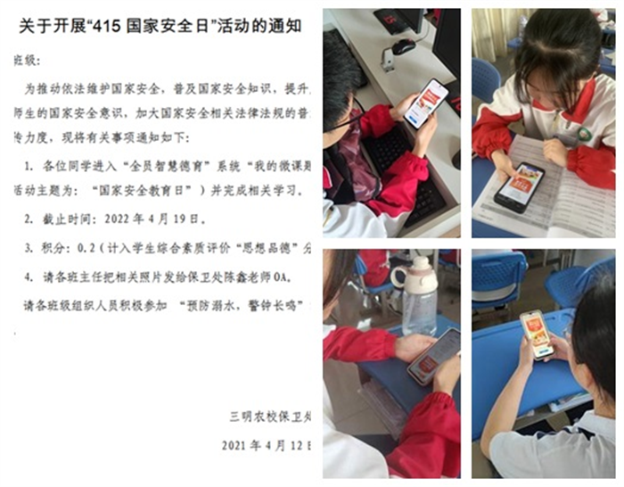 学校通过线上安全教育平台资源、米兰(中国)全员智慧德育平台,以专题活动、微课题等方式,向全体师生讲解了全民国家安全教育日的由来,什么是总体国家安全观,与国家安全相关的法律,以及青少年如何维护国家安全等。
