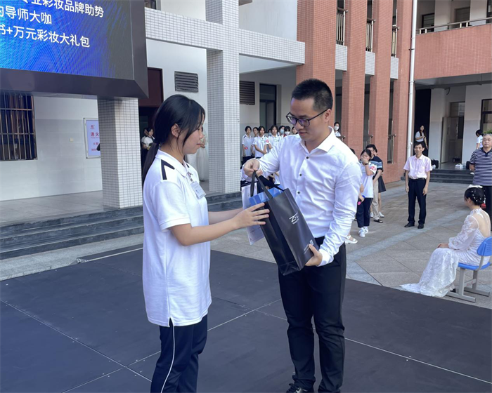 赛前,美赢东方ZFC集团代表陈祥远向我校授予“美赢东方ZFC集团战略合作百强名校”、“ZFC杯2022全国校园妆容大赛福建三明赛区官方指定报名机构”牌匾。
