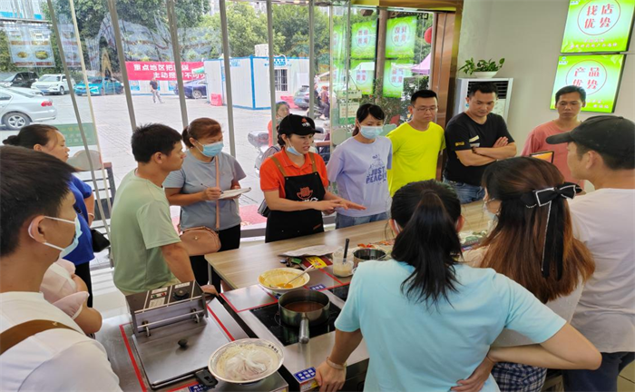 (沙县小吃菜品升级班学员在醉有才公司实训场景掠影)
