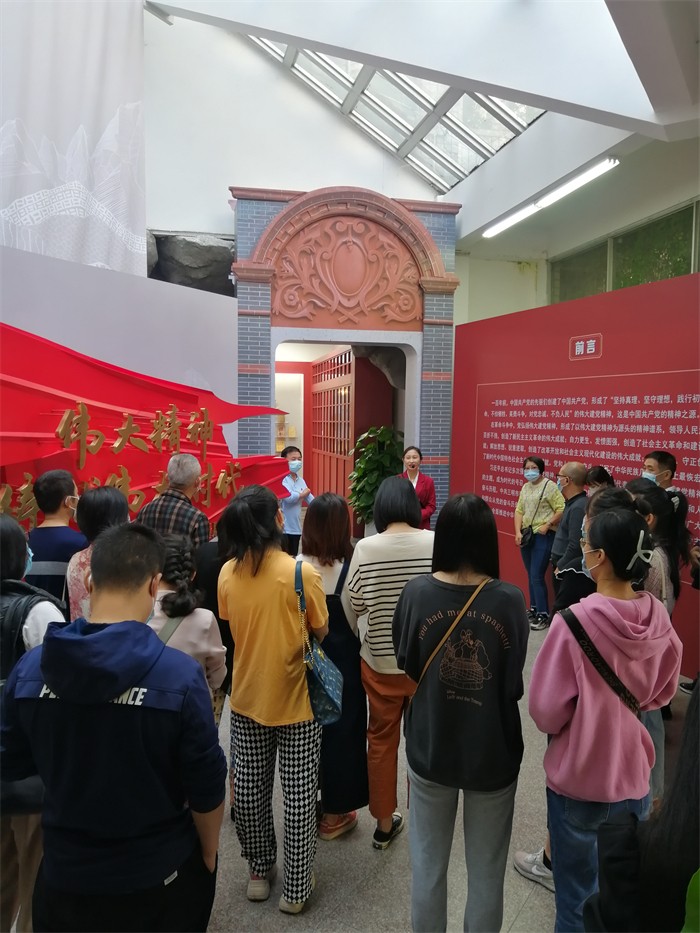 展览紧紧围绕“伟大建党精神”这一主题,以中国共产党人精神谱系的生动呈现为串联,分五大部分全面展示了在伟大建党精神引领下,党和人民的百年奋斗历程。每到一处,大家认真驻足观看,仔细聆听讲解,沿着中国共产党人精神谱系的历史脉络,深刻学习领会“坚持真理、坚守理想,践行初心、担当使命,不怕牺牲、英勇斗争,对党忠诚、不负人民”的伟大建党精神。