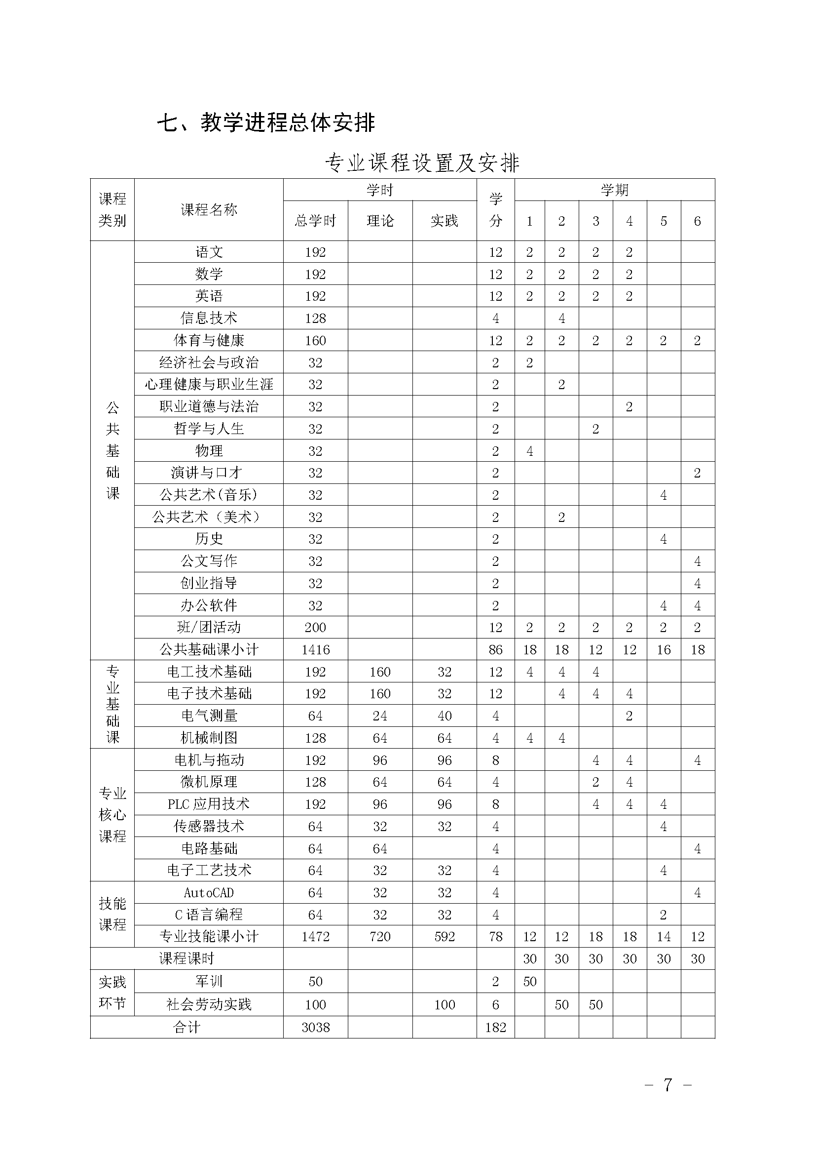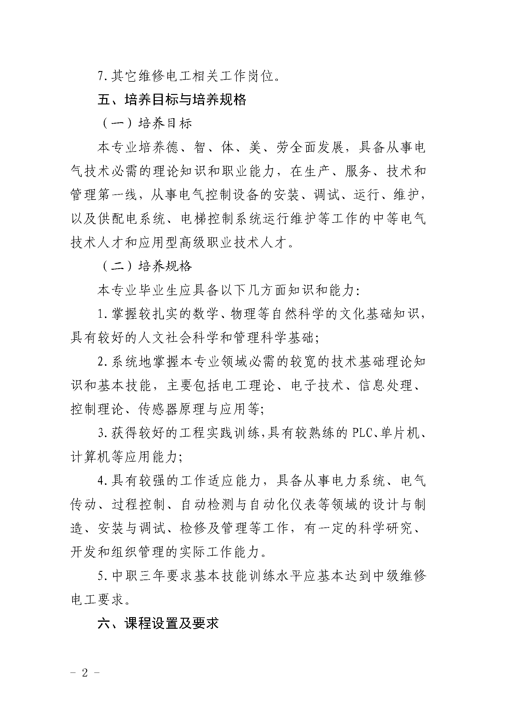 三明市农业学校电气运行与控制专业人才培养方案(2023)