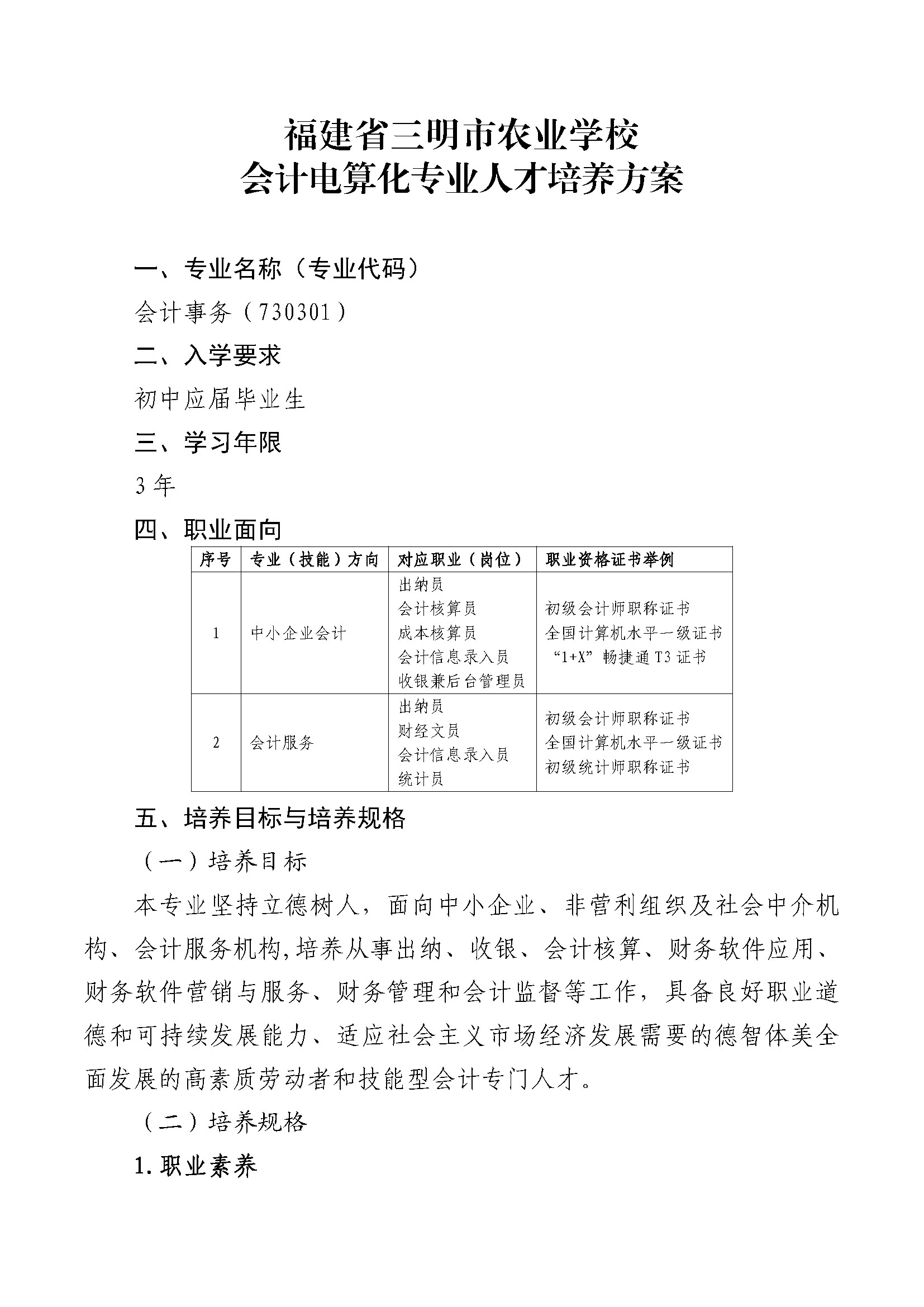 三明市农业学校计算机应用专业人才培养方案(2023)