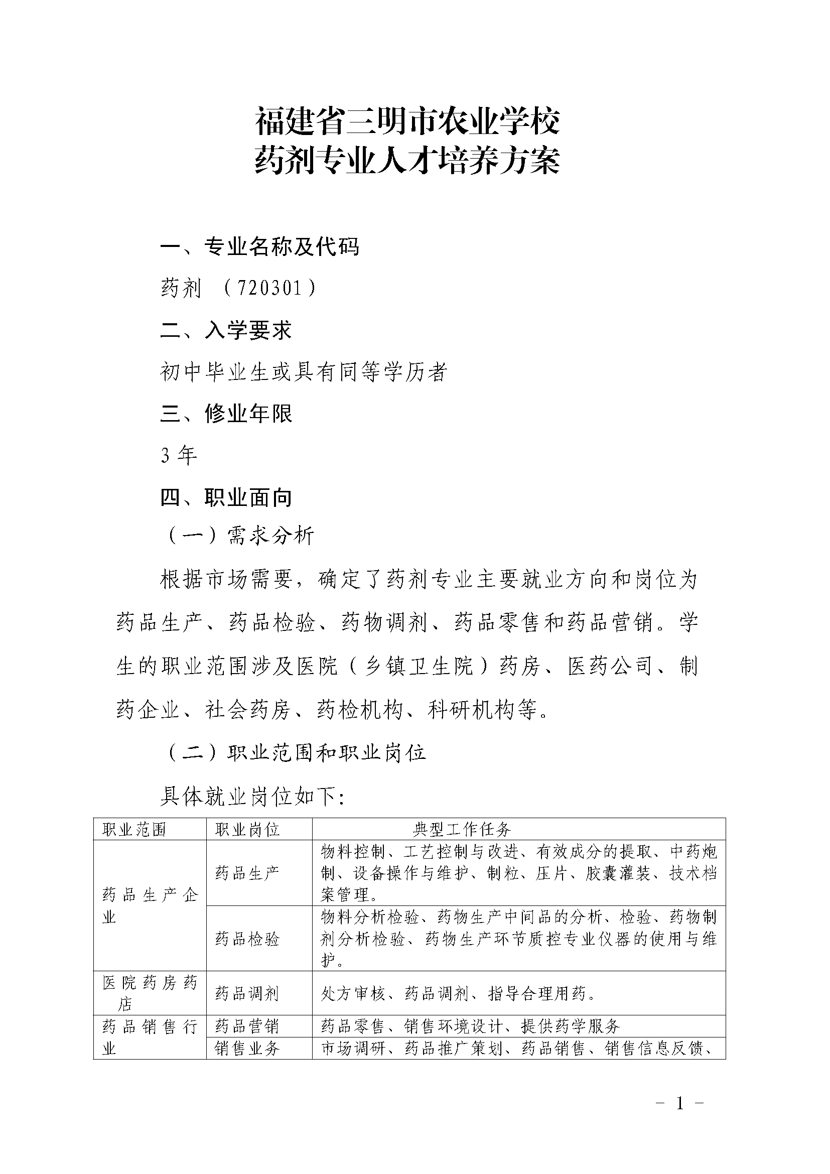 三明市农业学校幼儿保育专业人才培养方案(2023)