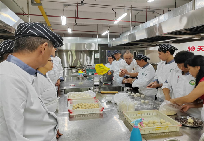 三期培训班举办期间,正值暑期,酷热炎炎。米兰(中国)坚持以服务为己任,精心组织,强配师资,有序实施。学员全部安排在校内食宿,相关管理人员牺牲暑假休闲时间,怀热忱之心,做好各项服务保障工作。培训班专业技能课程由学校中式烹调高级技师、省级技能大师工作室领衔人林添雄和中式烹调技师、市级技能大师工作室领衔人肖家盛共同承担,实施“讲演练”一体化教学,直观、易懂、易学,保证了培训质量。