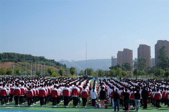 秋天的朝阳映照着青春的脸庞,飒爽的秋风轻抚着少年的衣角。伴随着激昂的旋律,国旗队、校徽队、彩旗队及97支由各班级组成的方队,迈着整齐的步伐,喊着响亮的口号依次走过主席台。他们昂首阔步、意气风发,在主席台前用各具特色、形式多样的表演展示班级文化、专业特色,展示农校人健康自信、积极进取的精神面貌,也展示了学校坚持五育并举、促进学生全面发展的育人成果。