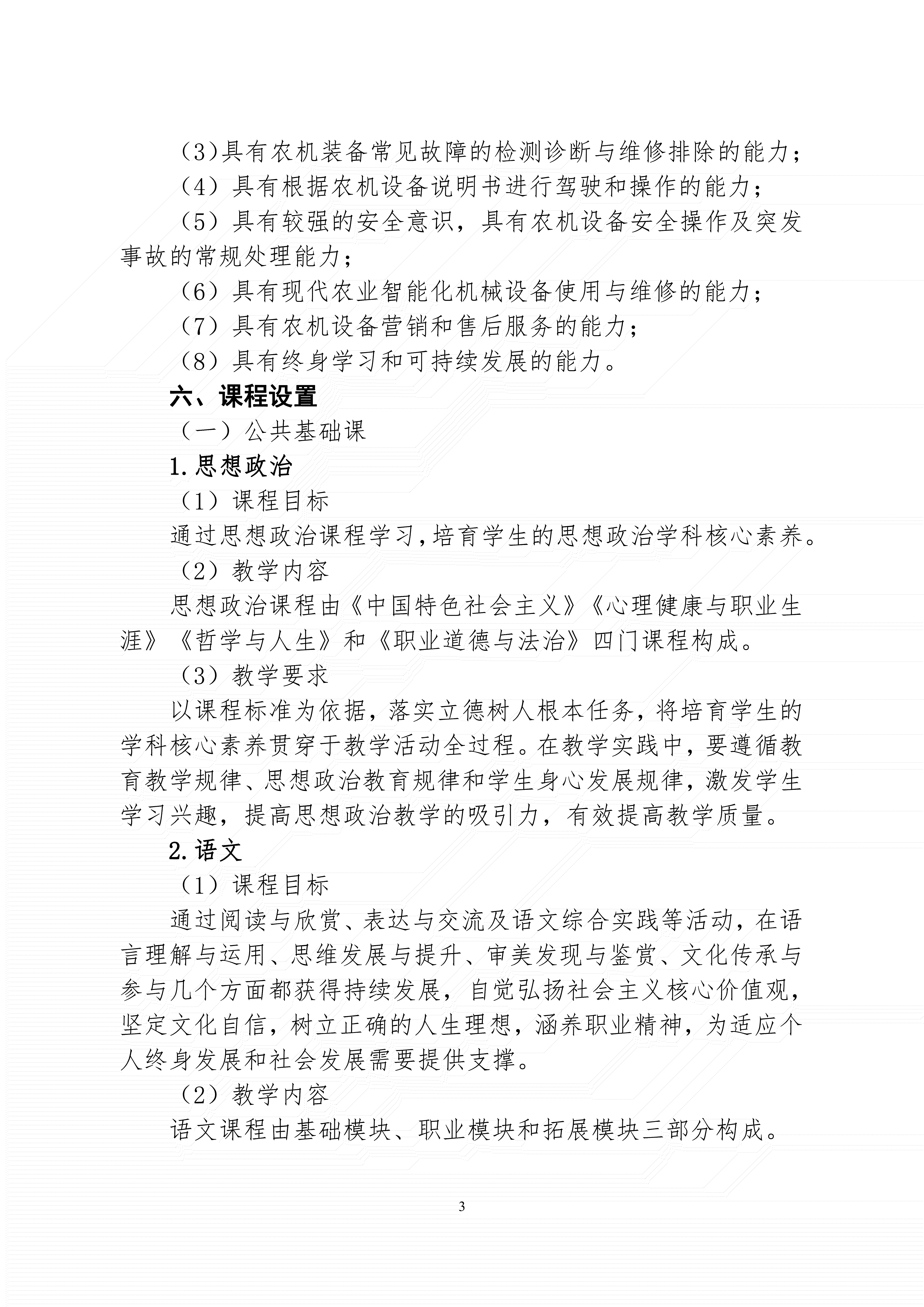 三明市农业学校农业设备应用与维修专业人才培养方案(2024)