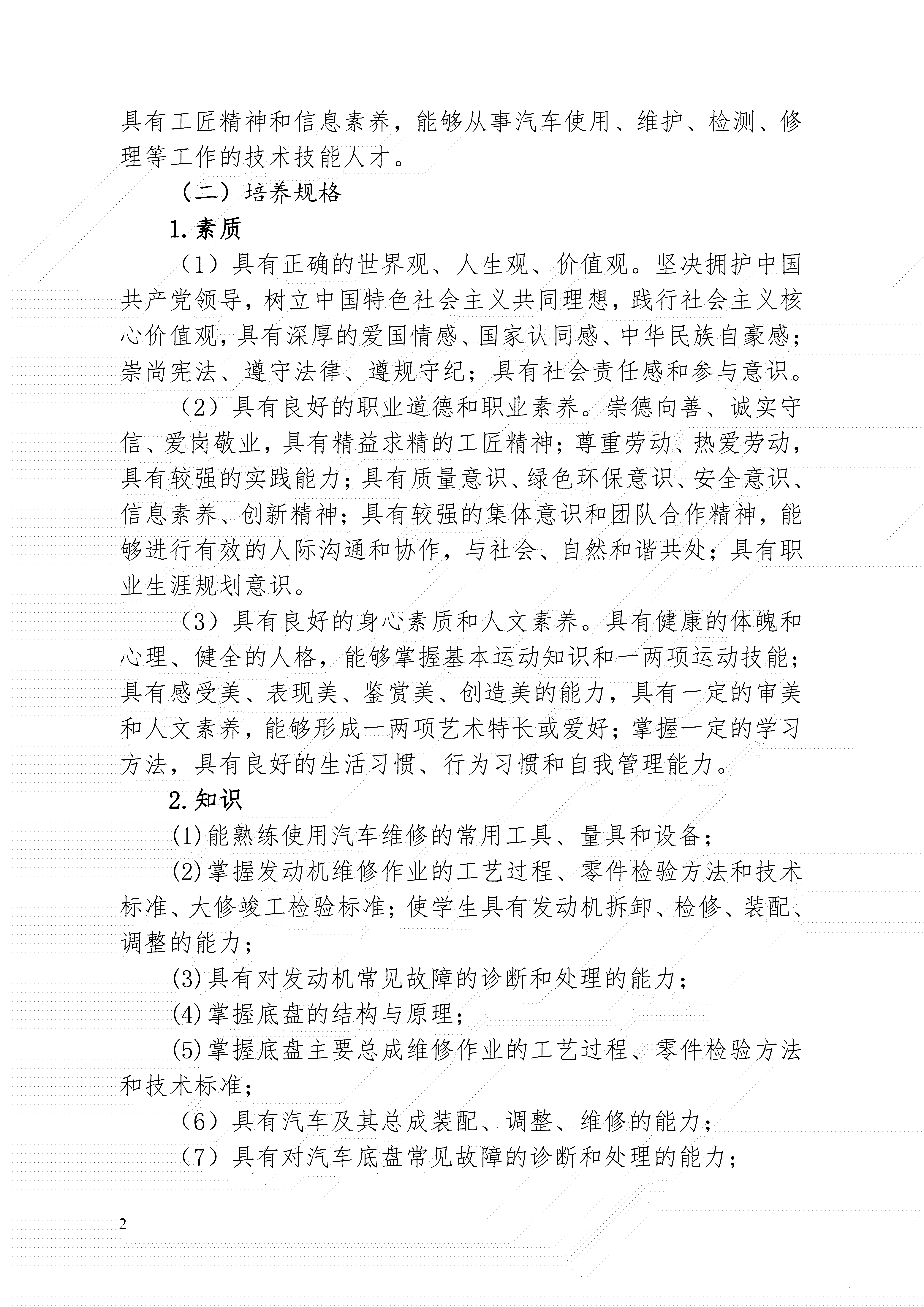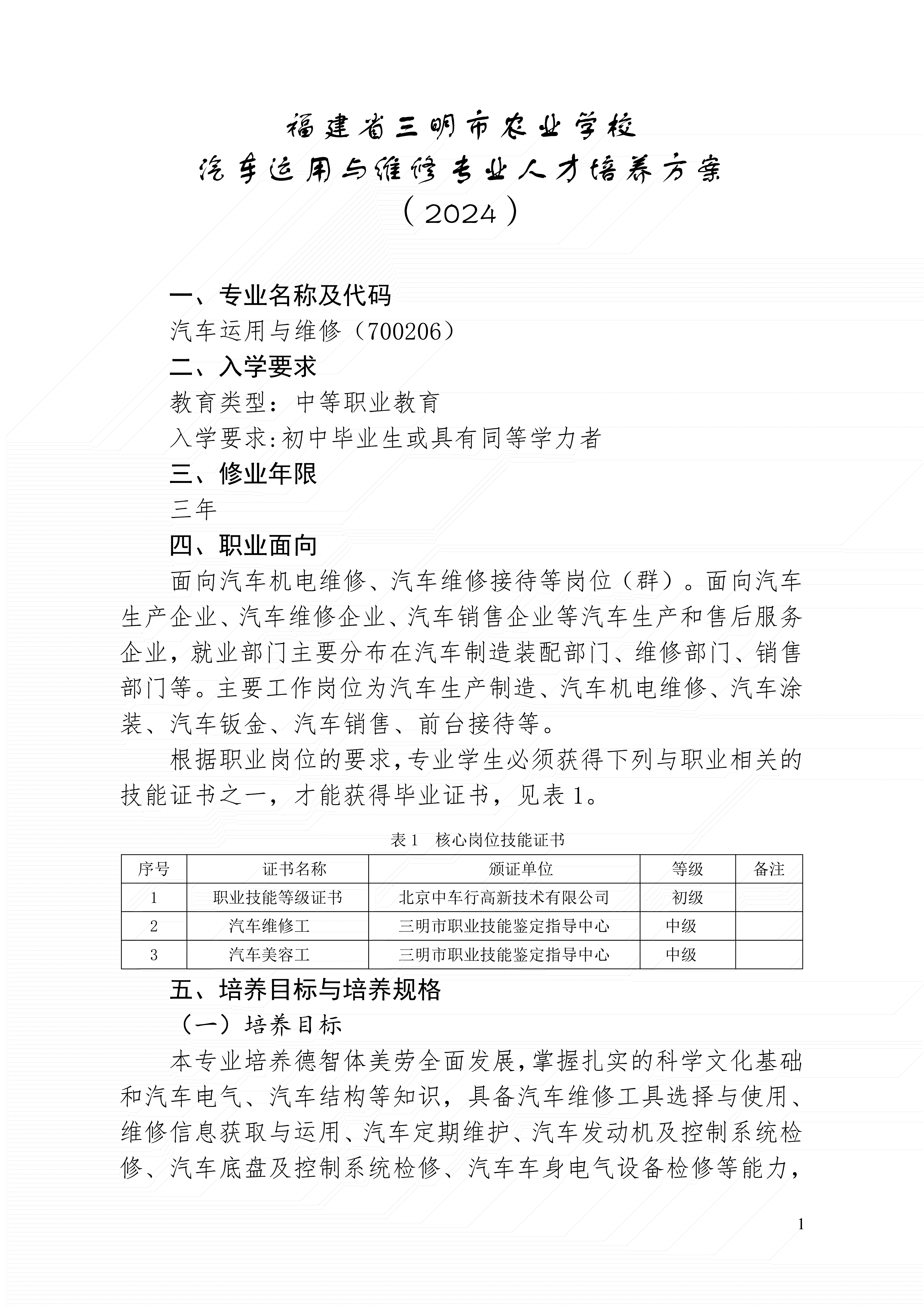 三明市农业学校汽车运用与维修专业人才培养方案(2024)