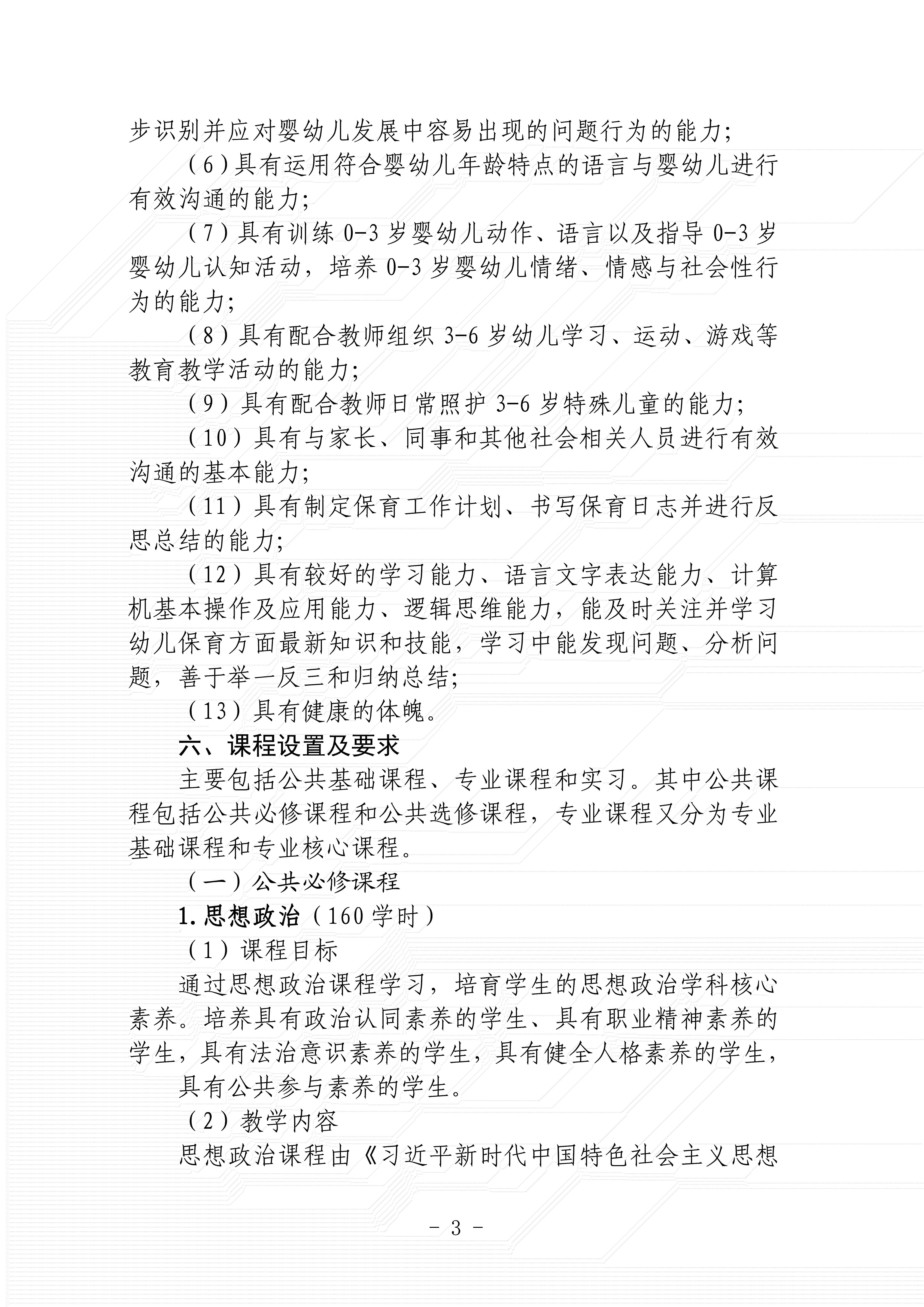 三明市农业学校幼儿保育专业人才培养方案(2024)