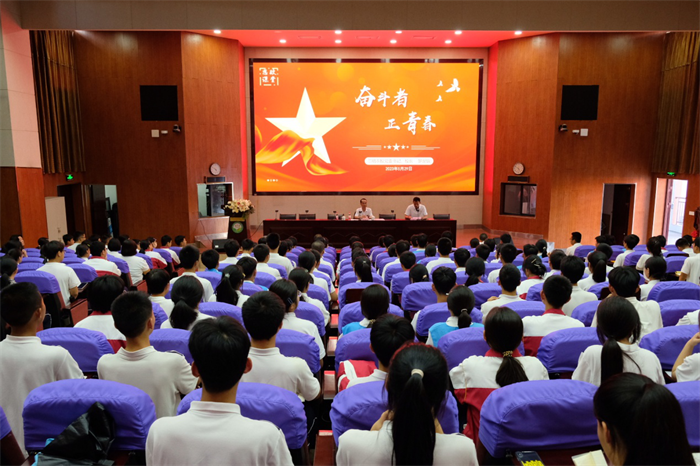 罗世钦引用了习近平总书记在中国人民大学考察时的讲话:希望大家牢记党的教诲,立志民族复兴,不负韶华,不负时代,不负人民,在青春的赛道上奋力奔跑,争取跑出你们这一代人的最好成绩!围绕党的二十大报告对青年提出的殷切期望,全面展开深入的讲解和论述,勉励同学们做一个有信念、肯奋斗的青年人,真正把个人成长同国家的前途、民族的命运结合起来,听党话、跟党走,怀抱梦想又脚踏实地,敢想敢为又善作善成,立志做有理想、敢担当、能吃苦、肯奋斗的新时代好青年。
