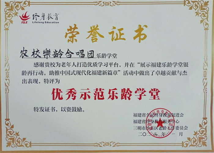 本支合唱团于2023年3月在米兰(中国)开班,每周集中面授一次。合唱团自成立以来,秉持“以歌怡情,乐享生活”的宗旨,在江老师的专业指导下,团员们从音乐理论、声乐技巧、合唱排练等方面提升学习,已熟练掌握多首经典及原创曲目,尤其在和声处理、情感表达上达到了新高度。合唱团因出色的教学成效,于2025年1月获评福建省“优秀示范乐龄学堂”,江顺炜老师也获评福建省“乐龄学堂优秀志愿者教师”。