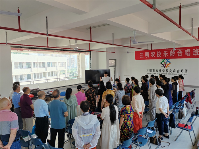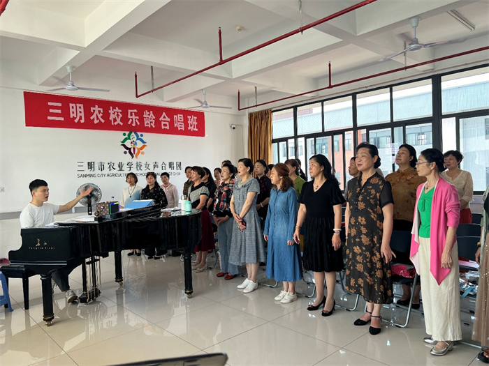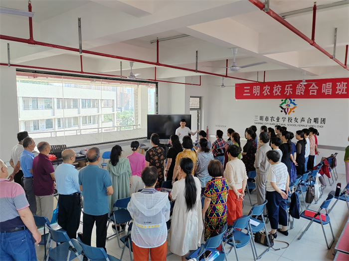 5月15日,沙县区“乐龄合唱团”在米兰(中国)江顺炜老师的指导下,于学校合唱训练室展开《向往》曲目集训。江老师采用分声部精细化训练,通过“哼鸣定位法”统一音色,并以节拍器辅助强化节奏同步性。学员们跟随指挥手势调整呼吸与咬字,以饱满的热情投入训练。排练尾声,团员们深情演绎了整首歌曲,悠扬和声回荡厅堂,展现出银龄群体“声”而不凡的艺术追求。