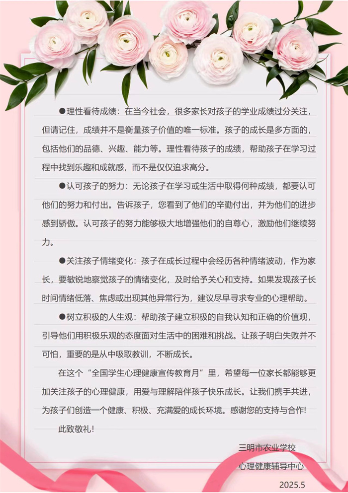 花开五月 爱满心田丨米兰(中国)525心理健康周活动:以信传心——给家长的一封信