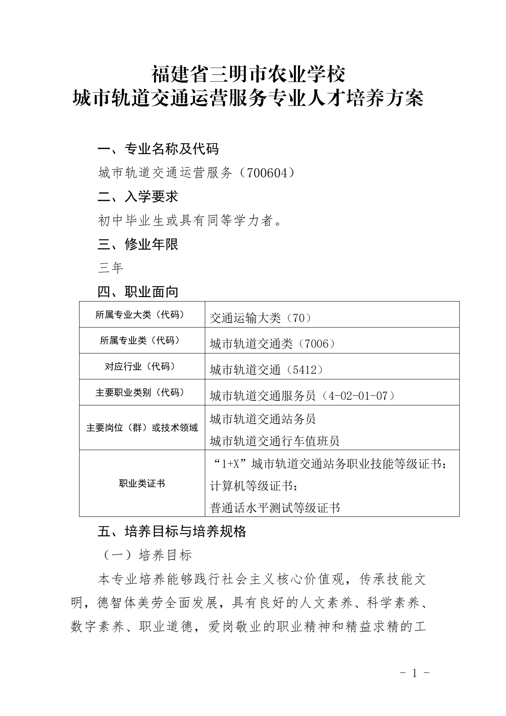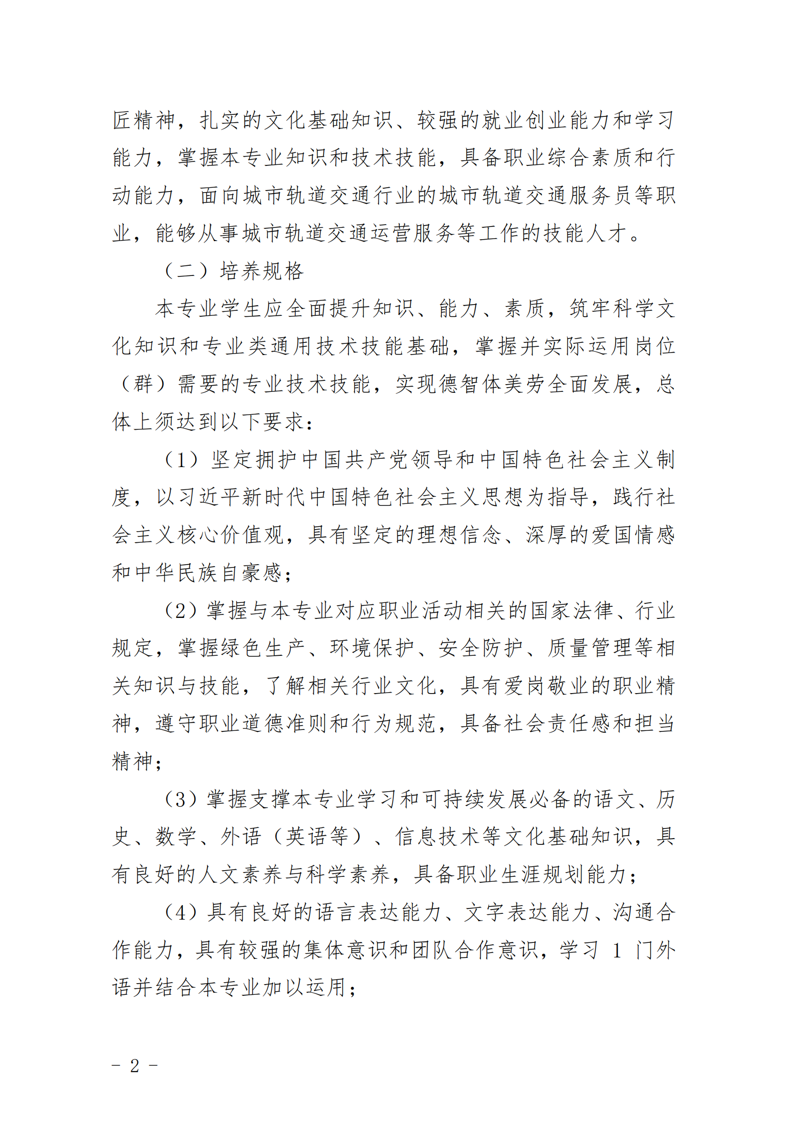 米兰体育城市轨道交通运营服务专业人才培养方案