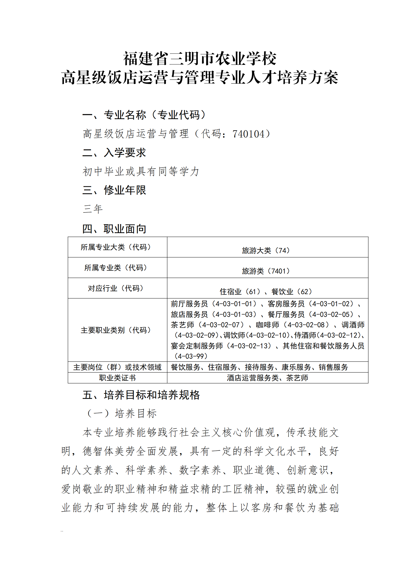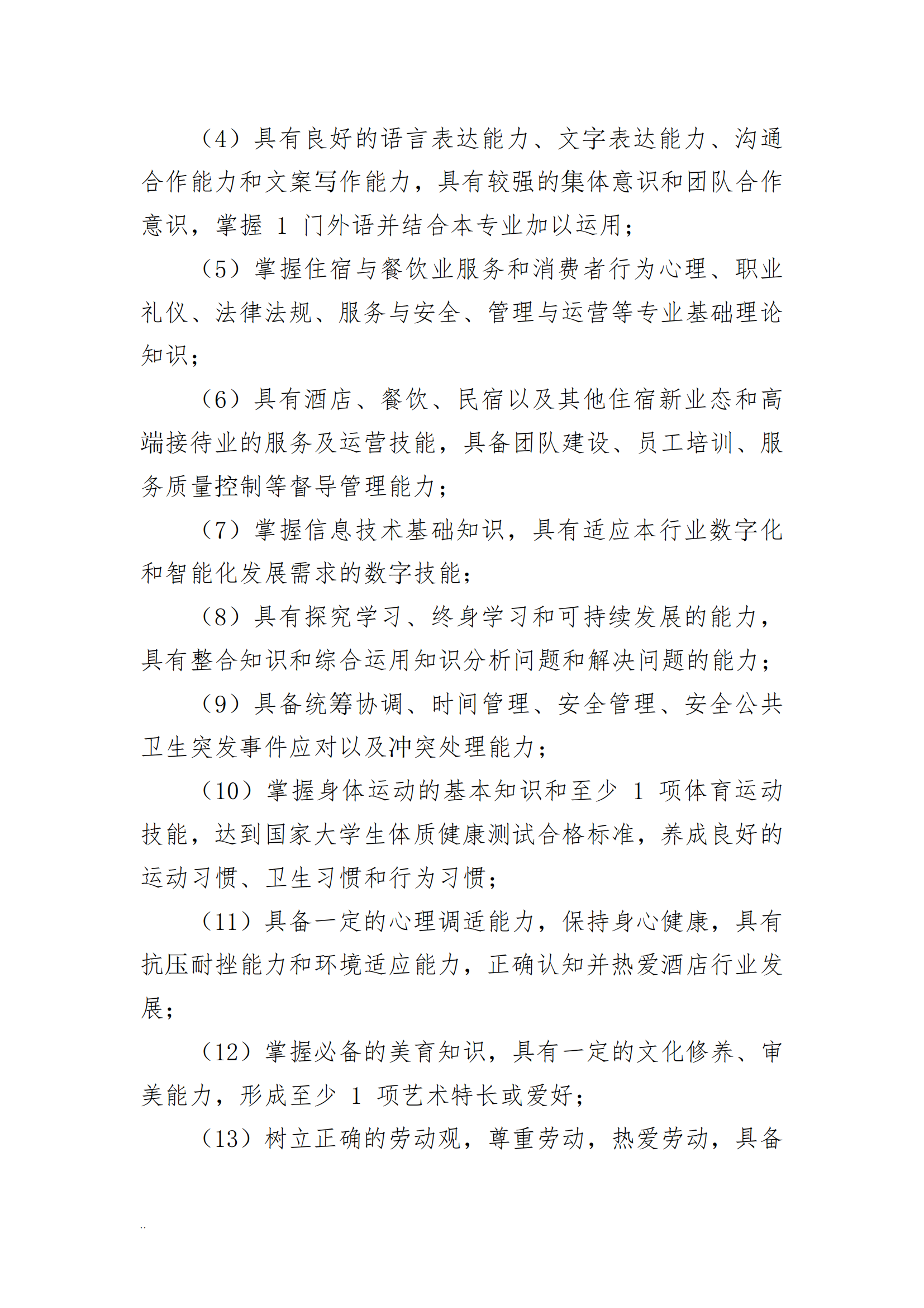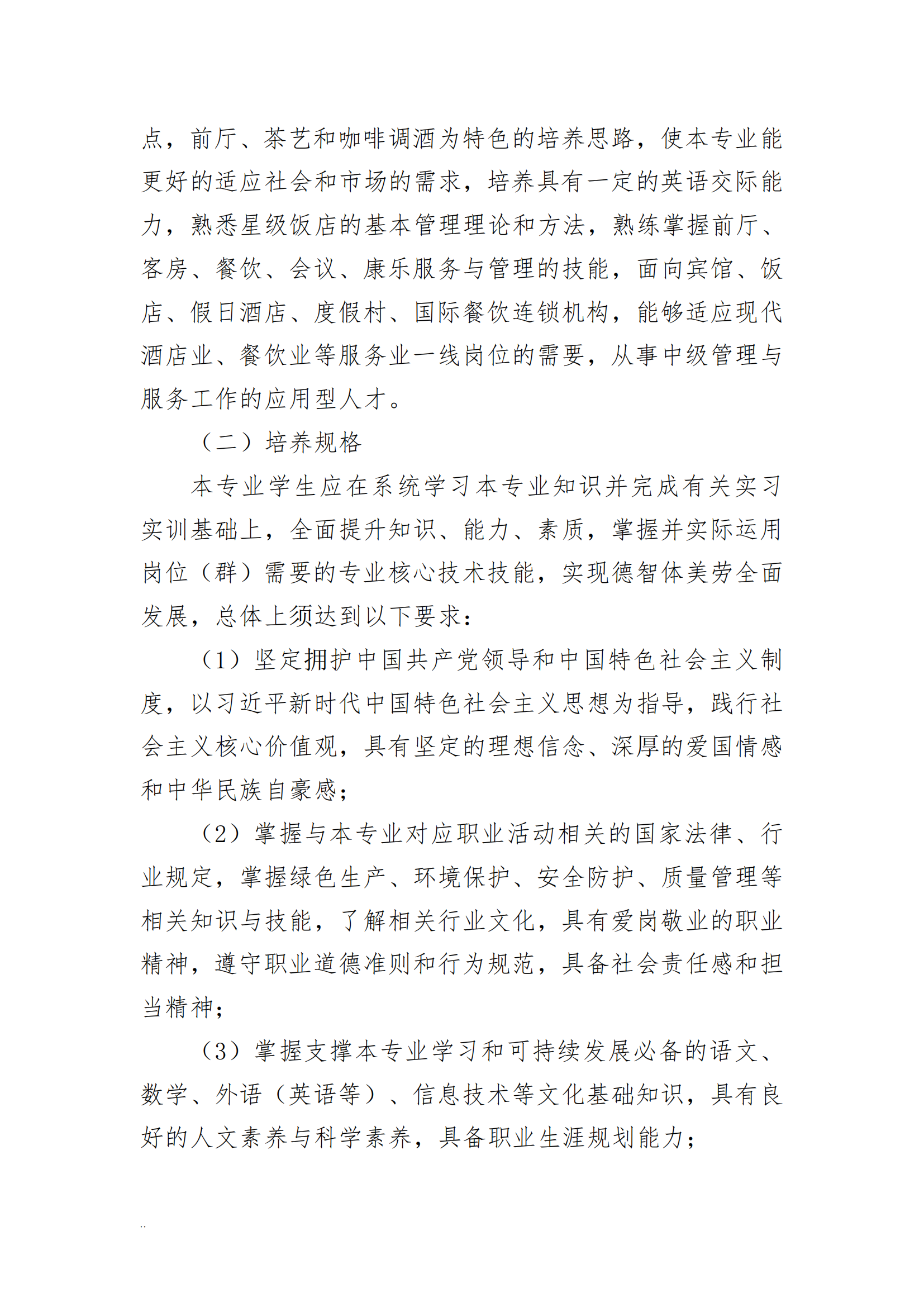 米兰体育高星级饭店运营与管理专业人才培养方案