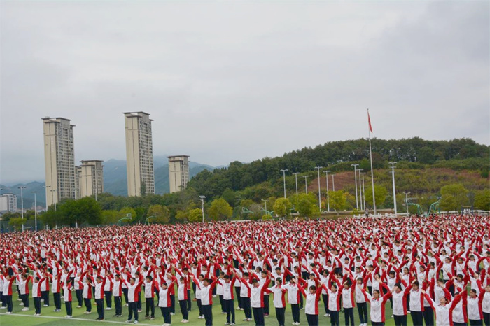 当天下午,学校举行了全校广播操比赛。师生们动作整齐划一,步伐协调一致,展现出强大的集体凝聚力和蓬勃朝气。